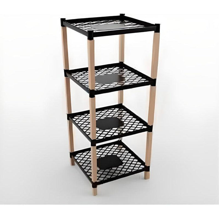 Drvena polica sa plastičnim pregradama pogodna je za manje i veće prostorije. Neutralnije boje ove police odgovaraju svim vrstama enterijera.