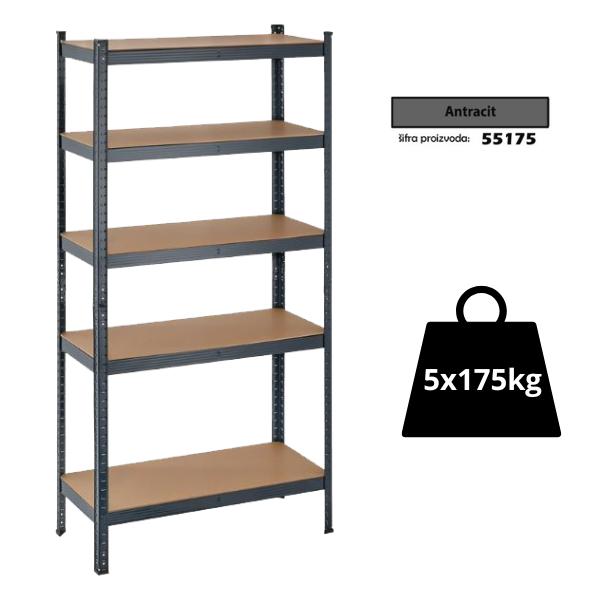 Polica metal-medijapan 180x75x35cm, 5x175kg antracit