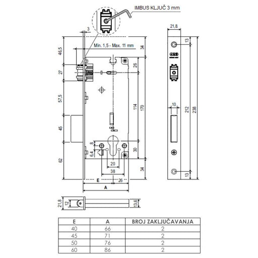 BRAVA ZA DRVENA VRATA B2005 K- ključ ZnŽ