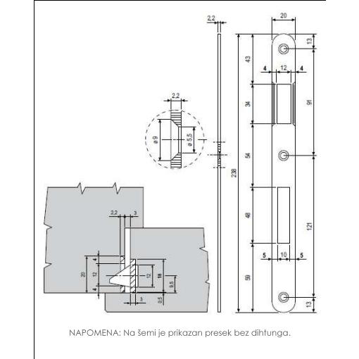 Pripremiti štok vrata prema dimenzijama sa dijagrama. Prihvatnik se ubacuje u frezovani deo na štoku i montira se sa tri vijka 4,5 x 25mm.