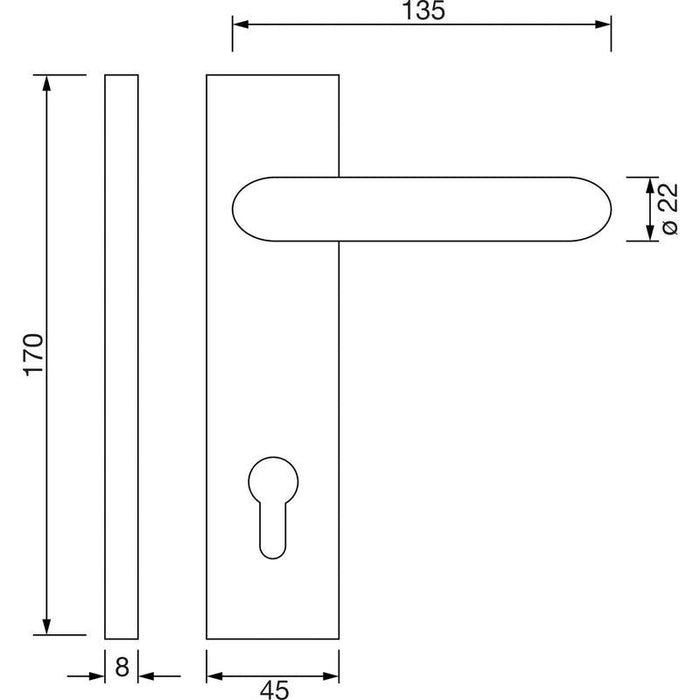 Garnitura kvaka protivpožarna U-oblik sa kratkim štitom PZ 72, crna