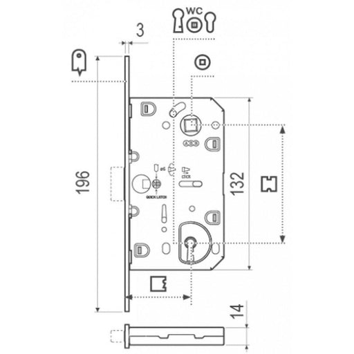 Napravljena po sistemu samourezujućih vijaka sa mehanizmima povratne opruge. Garnitura za kvake kreirana za wc vrata. Bušenja BB, PZ, WC. Nije zašt...