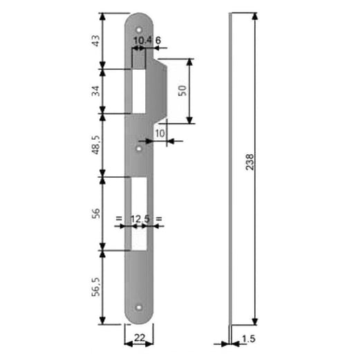 OPIS- Metalni zaobljeni prihvatnik, širine 22 mm i dužine 238 mm. Zakošeni nastavak je u delu gde gornji jezičak brave ulazi u prihvatnik. Na ovaj...