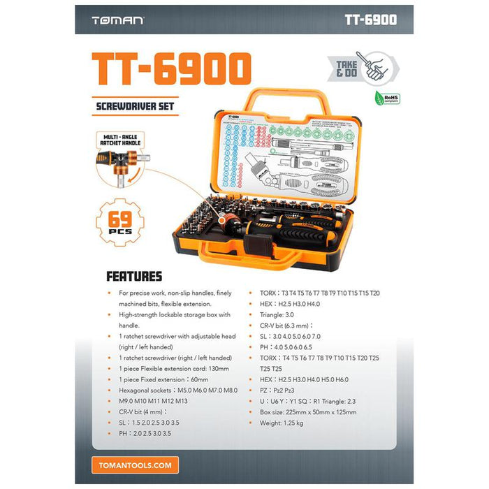 Toman Set alata, profesionalni komplet, 69 kom - TT-6900