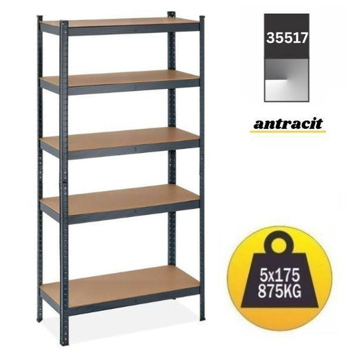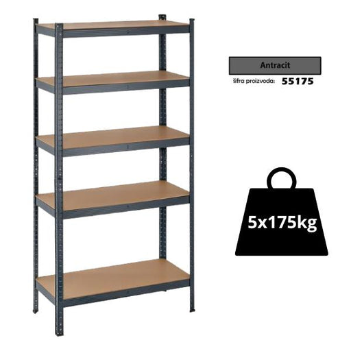 Polica metal-medijapan 180x75x40cm, 5x175kg antracit
