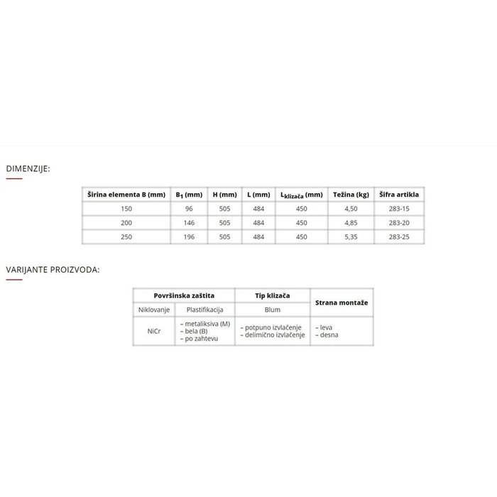 EKSKLUZIV BOČNA FIOKA- širina elementa 200mm