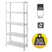 Polica ima 5 nivoa, a svaki nosi 75kg. Ukupna nosivost je 375kg. Metalni deo police čine stubici u L profilu 30x30mm sa duzinskom perforacijom. Perforacija omogucava proizvoljno podesavanje raspona izmedju nivoa police.