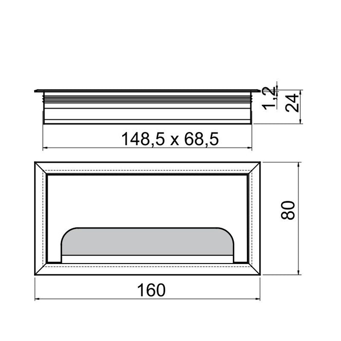 Za montažu rozetne potrebno je izbušti otvor u materijalu dimenzija 149x 69mm.