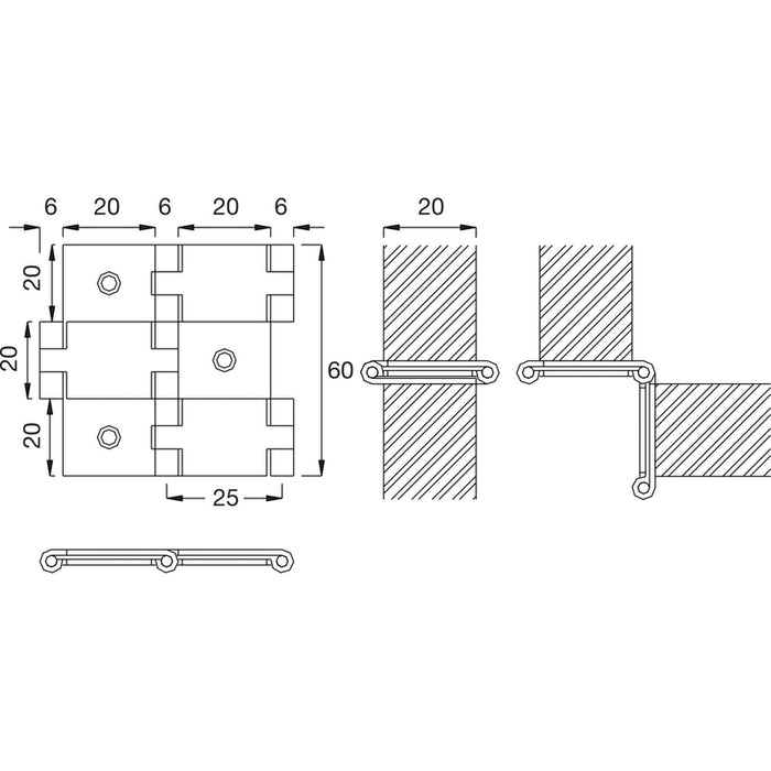 Šarka Paravant 60x30 mm, debljina drveta 24 mm, mesing poliran