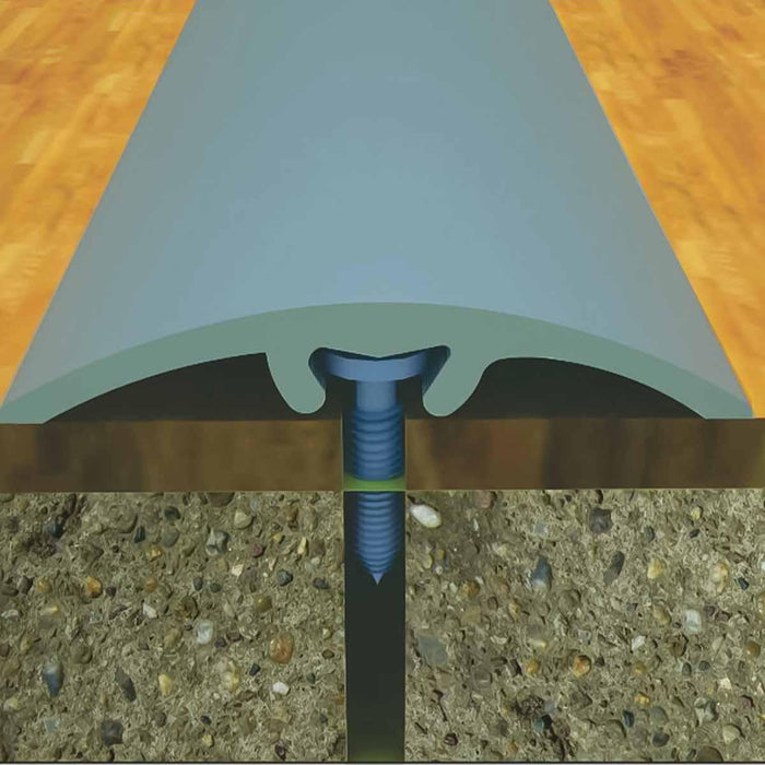 Montaža 4011 profila sa skrivenim šrafom se vrši na sledeći način: Nakon što izbušite rupe u podu izmedju dve podne obloge, postavite u njih tiplove a u same tiplove malo silikona. Postavite šrafove u ležište sa donje strane 4011 prelaznog profila, centrirajte šrafove na mesta na kojima se nalaze rupe. Gumenim čekićem blago nakucajte profil 4011 u predhodno izbušene rupe.