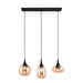 VISILICA LUMINA 3XE14 317000313 – Model visilice u mat crnoj boji, kombinacija tri različita oblika stakla u amber boji, maksimalna visina 1500mm, preporuka LED sijalica zbog smanjene potrošnje električne energije, odlična završna obrada