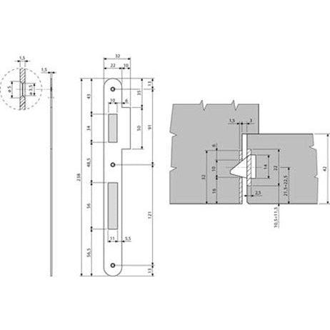 Pripremiti štok vrata prema dimenzijama sa dijagrama. Prihvatnik se ubacuje u frezovani deo na štoku i montira se sa tri vijka 4,5 x 25mm.