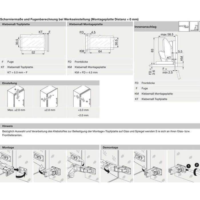 BLUM CLIP top CRISTALLO šarka za vrata sa ogledalom 110°, sa oprugom
