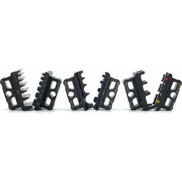 Dizajniran za presovanje utikača i kablova, prstenastih papučica. Alat ima dug vek trajanja, jer je napravljen od hrom-vanadijum alatnog čelika, kaljenog u ulju. Alat je opremljen oprugom za brzo otvaranje. Sistem prenosa sa više veza omogućava vam da prenesete mnogo napora na alat tokom rada. Zamenljive mlaznice u setu klešta za presovanje omogućavaju im da rade metodom ovalnog presovanja u opsegu od 0,75 do 10 mm2. , ravne utikače, ravne utičnice, okrugle utikače, okrugle utičnice, čeone i paralelne konektore. Profil 1: crveni 0,5-1,0 mm². Profil 2: plavi 1,5-2,5 mm². Profil 3: 4,0 - 6,0 mm² - Matrica za obradu kablovskih papučica bez izolacione čaure prema DIN 46228, opseg poprečnog preseka 0,14 - 10,0 mm² - Matrica za obradu neizolovanih kablovskih papučica, preseka 0,1 - 10, 0 mm²
